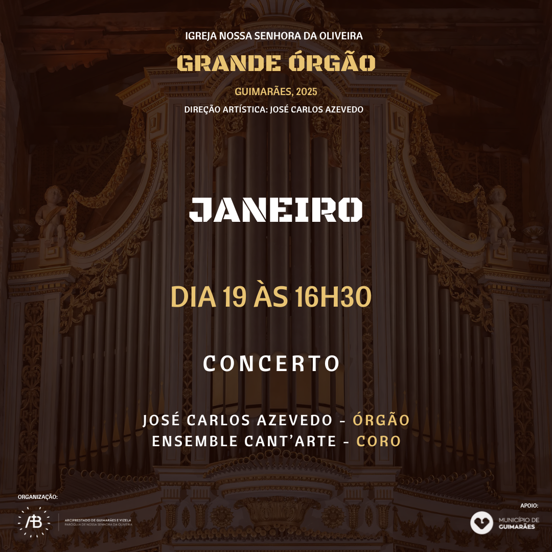 O espírito natalício prolonga-se em Guimarães com o concerto Ecos do Natal, que terá lugar no dia 19 de janeiro de 2025, às 16h30, na Igreja de Nossa Senhora da Oliveira. Apesar de já fora da época de Natal, este evento promete trazer a magia das músicas natalícias num ambiente único e interativo. Com o Ensemble Cant’Arte – Coro e José Carlos Azevedo no órgão, o público será convidado a participar, cantando e interagindo com os músicos, num repertório de canções natalícias bem conhecidas. Este concerto é uma oportunidade especial para ouvir o maior órgão histórico do norte de Portugal, acompanhado por uma família de músicos talentosos: Sandra Azevedo, Joel Azevedo, Isabel Azevedo e Hugo Pereira. Não perca esta celebração musical, que une cultura, tradição e emoção.