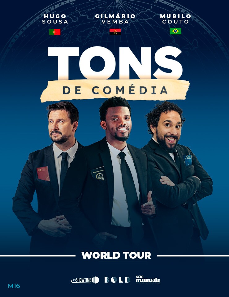 Três comediantes, três países, três estilos de humor. Hugo Sousa, Gilmário Vemba e Murilo Couto sobem ao palco para mostrar que, apesar das diferenças culturais, a comédia é universal. De Portugal, Angola e Brasil, chegam histórias inesperadas, momentos hilariantes e perspetivas que vão fazer o público rir sem parar. “Tons de Comédia” é mais do que um espetáculo de stand-up: é uma celebração das nuances e cores da vida através do humor. Não perca!