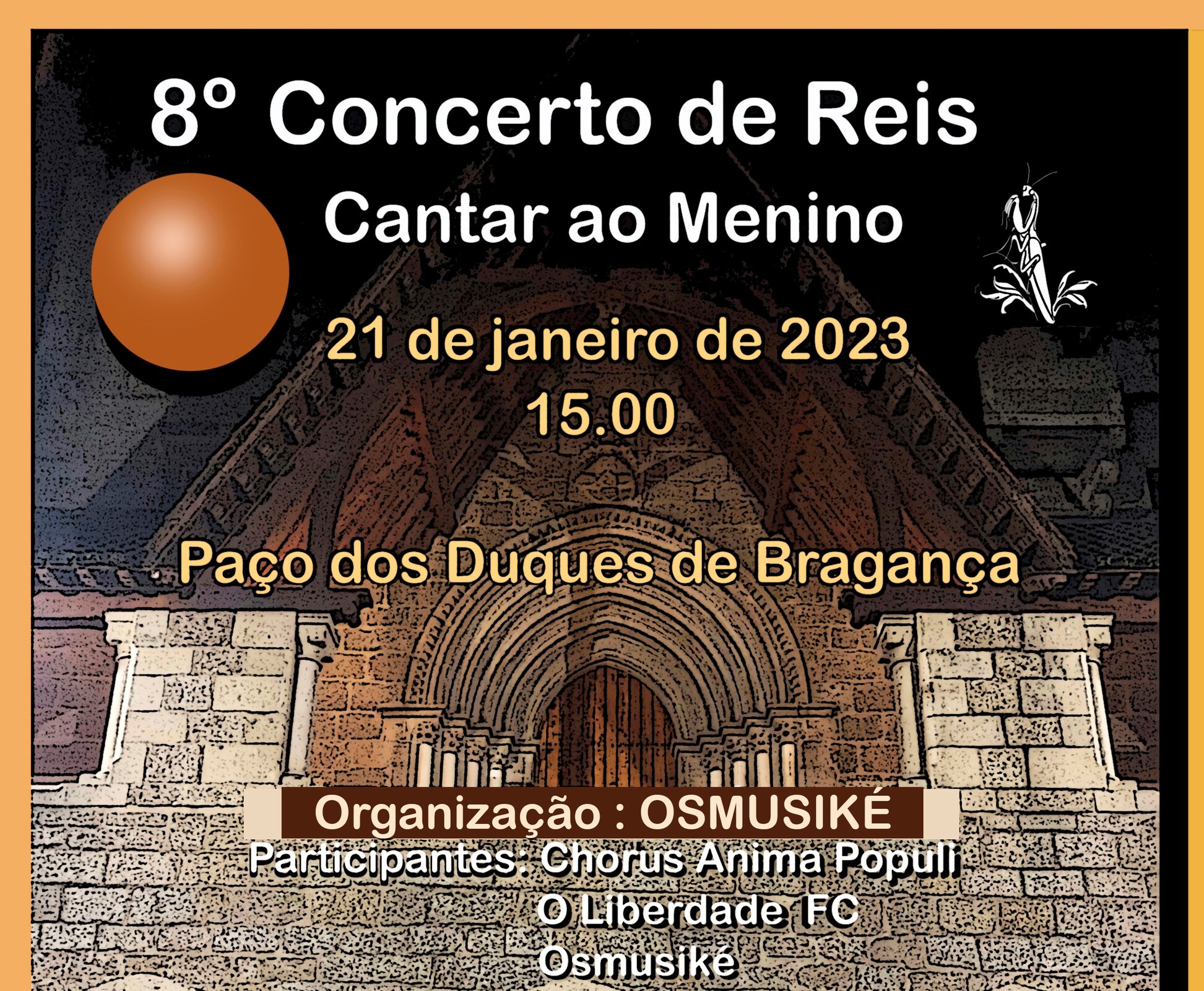 O já tradicional Concerto de Reis - Cantar ao Menino constitui um dos momentos marcantes da temporada musical de Osmusiké, não só pelo extraordinário clima festivo e popular que rodeia este Programa, contando, este ano, com a participação dos Grupos - Chorus Anima Populi, Liberdade FC e Osmusiké, mas também pela habitual participação do público que, ano após ano, aguarda com entusiasmo este Concerto para festejar a chegada do Ano Novo.
