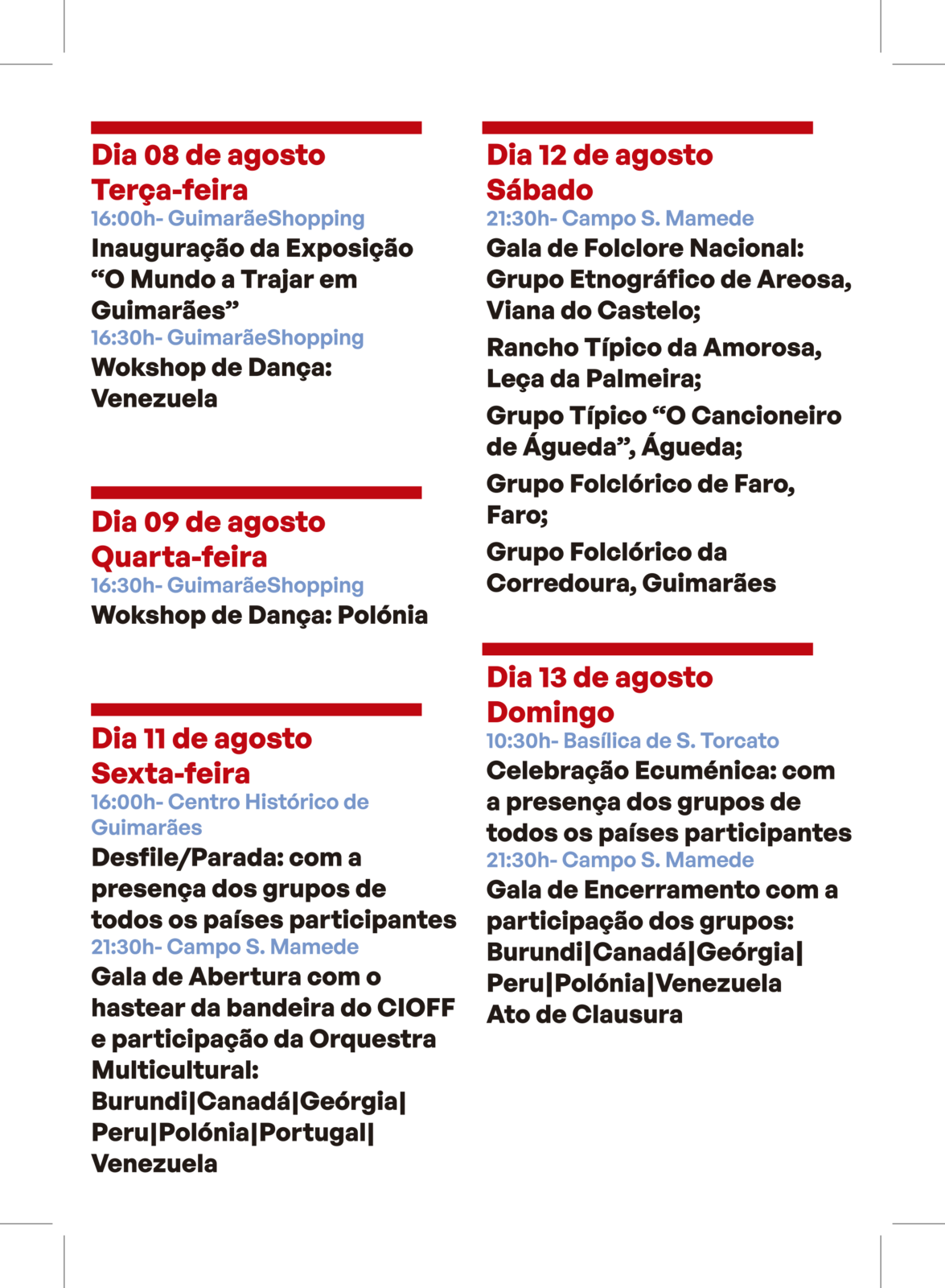 16h00 | Desfile/Parada com a presença dos grupos de todos os países participantes
