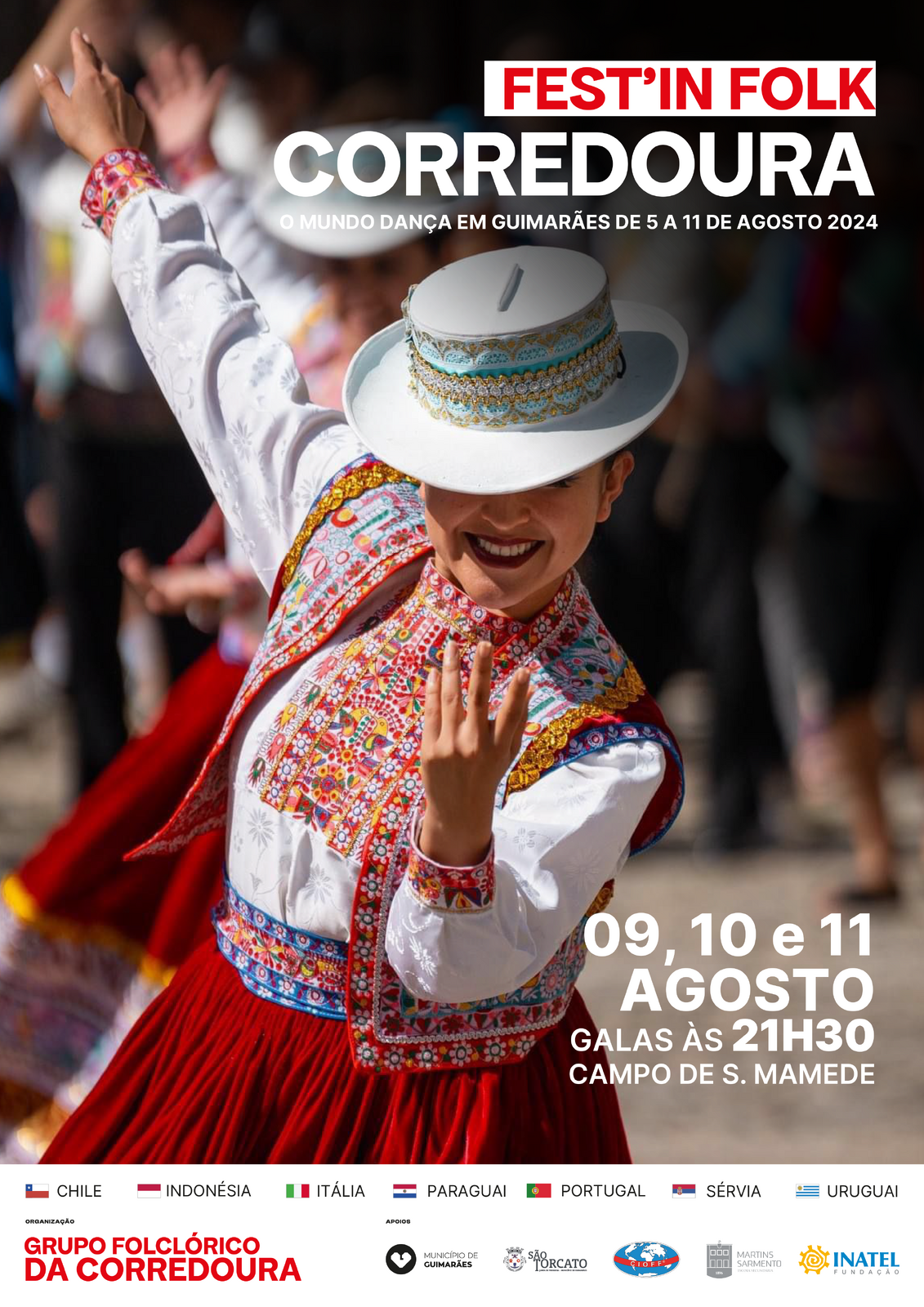 O Fest'In Folk Corredoura - O Mundo Dança em Guimarães 2024, realiza-se de 5 a 11 de Agosto, onde, durante 7 dias celebra a diversidade cultural através da música, dança e outras expressões artísticas, trazendo grupos de vários países, de todo o Mundo, para se apresentarem na cidade de Guimarães. O festival promove a interculturalidade e inclui uma variedade de atividades, como desfiles, workshops em praças públicas, espetáculos e cerimónias ecuménicas.