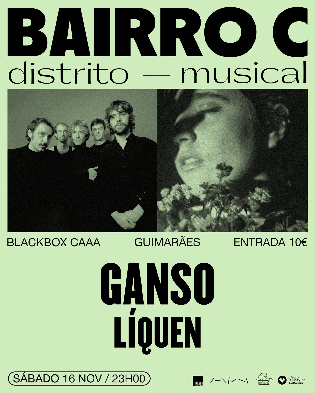 Os GANSO são Luís Ricciardi, João Sala, Miguel Barreira, Gonçalo Bicudo e Diogo “Horse” Rodrigues. LÍQUEN parte do imaginário e da expressividade de Constança Ochoa, cantora natural de Coimbra, que unindo a voz à poesia e às polifonias vocais, assume um projecto com uma identidade fluída, circulando através do pop, o jazz, a MPP e outras influências. A co-criadora de Peixinhos da Horta e membro de Human Natures abraça agora composição a solo, e mergulha numa estratégia colectiva de produção das suas canções, aliada aos três músicos e produtores Buga Lopes, Leonardo Patrício e Pepas. Enquanto organismo simbiótico, um líquen representa a metáfora perfeita à identidade do projeto: uma simbiose entre diferentes géneros musicais, preferências pessoais e sonoridades de caráter electro-acústico.