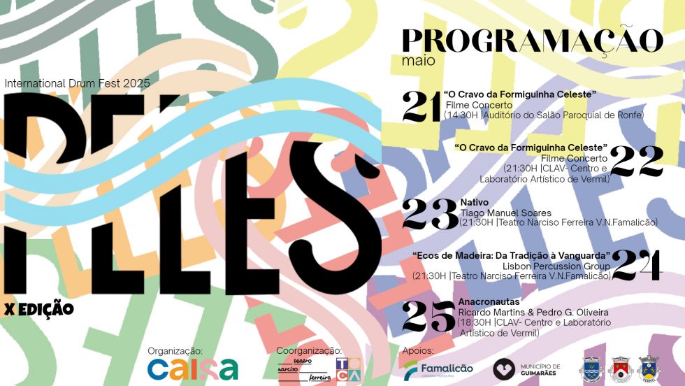 O PELES – International Drum Fest celebra este ano a sua 10.ª edição, afirmando-se como um dos festivais mais singulares da percussão contemporânea em Portugal. Realizado entre os territórios do Rio Peles e Rio Ave, nos concelhos de Guimarães e Vila Nova de Famalicão, o PELES é uma plataforma dedicada à criação artística, à experimentação sonora e ao diálogo entre géneros musicais e disciplinas performativas.
