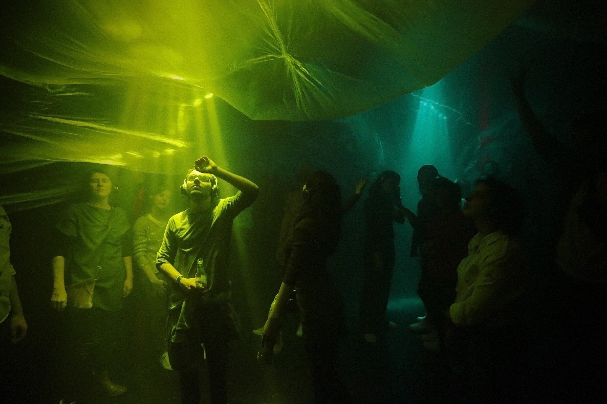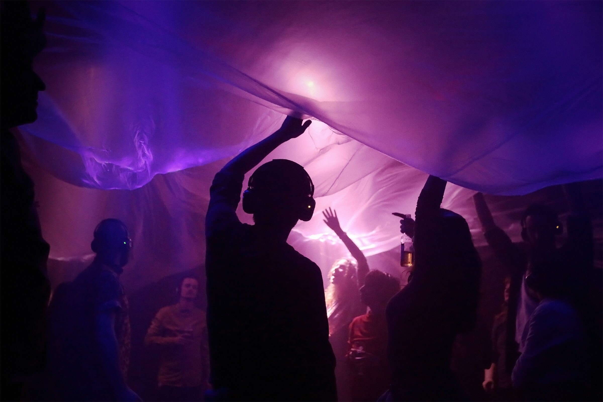 “Silent Disco” é um espetáculo imersivo que acontece em discotecas, explorando o potencial da tecnologia das festas ‘silent disco’. O público forma uma comunidade temporária, guiada através de auscultadores pelo espaço vazio da discoteca. Este espetáculo procura especular sobre a natureza do clubbing como um acto de resistência, capaz de reconfigurar formas de reflexividade, afetividade e corporalidade. Identidades queer, sexualidades múltiplas, consumos hedonistas, fisicalidade crua – poderão estes constituir-se como práticas políticas de resistência?